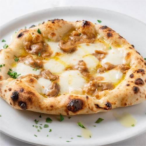 風味豊かなイタリアのピッツァ専用小麦の熟成生地に載せるのは、モッツアレラチーズ専門のグループ店「MUMUモッツアレラ」の自家製新鮮モッツアレラチーズ。イタリアの原材料を使用し、店舗で手作りしているジューシーなもの。
